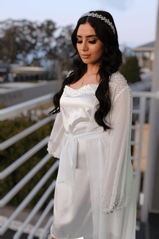 Ivory Pearl Embellished Bridal Slippers "BRIDE"