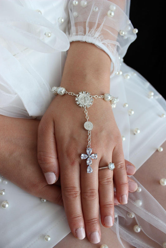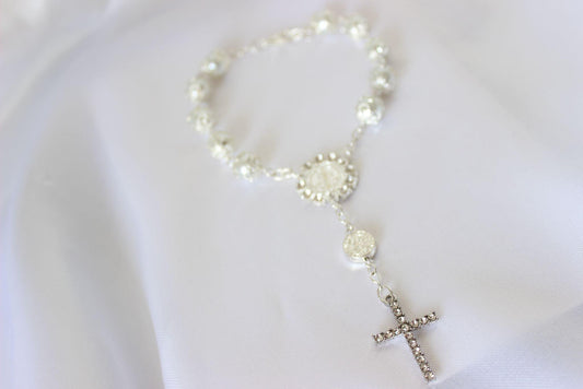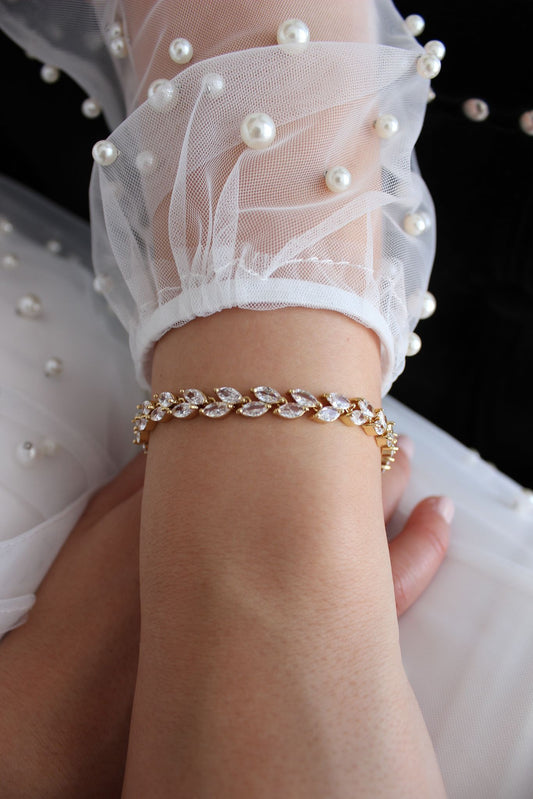 Elevate your bridal look with our stunning collection of wedding bracelets, featuring everything from classic tennis bracelets to dazzling crystal designs and elegant rosary bracelets. Available in silver, gold, and rose gold, our pieces come in various sizes to perfectly complement your wedding attire.