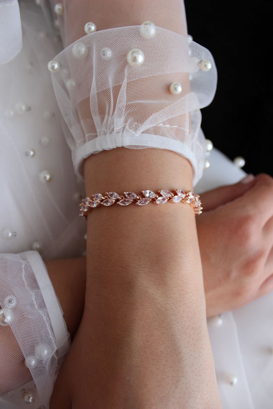 Rose gold wedding bracelets offer a romantic, contemporary touch that’s increasingly popular among brides. The soft pinkish hue of rose gold adds a subtle warmth to your bridal look, creating a beautiful, feminine glow. Whether you choose a sleek rose gold tennis bracelet or a design embellished with cubic zirconia or pearls, these bracelets offer a perfect balance of modern style and timeless elegance.