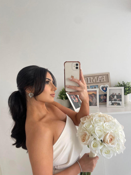 Whether you’re wearing a minimalist gown or a richly embellished dress, our wedding jewellery seamlessly enhances your look. Choose delicate pieces for subtle elegance or bold designs to make a statement.