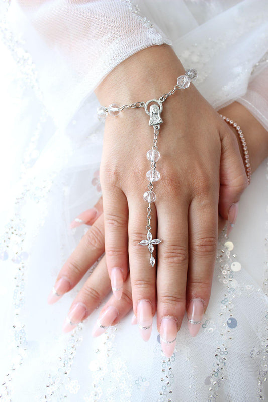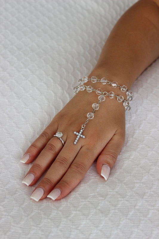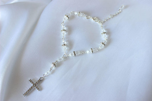 Bridal Rosary Bracelet with Crystals and Marquise Cross