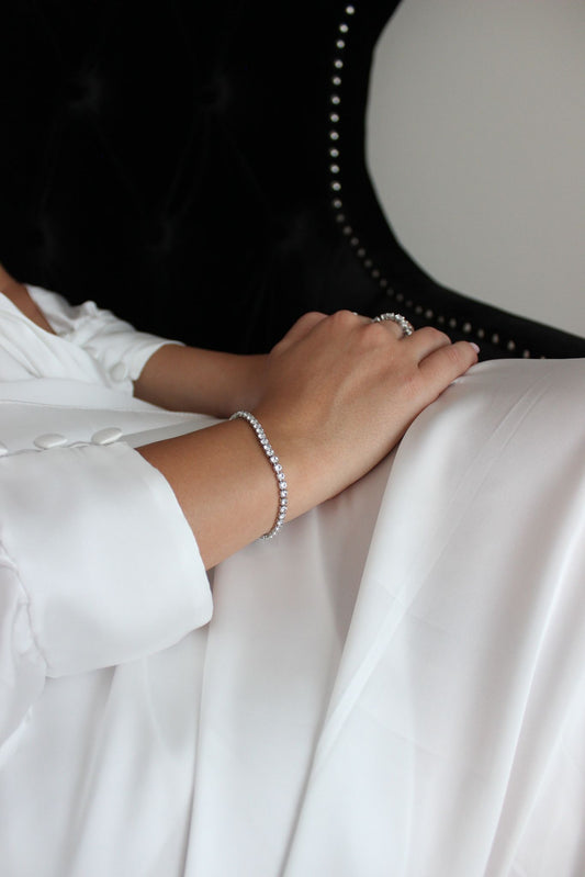 Explore our exclusive range of bridal jewellery, curated to add a touch of elegance and sparkle to your special day. Our collection includes stunning tennis bracelets, classic bracelets, unique rosary bracelets, and a variety of bridal and bridesmaid earrings, designed to complement your look.