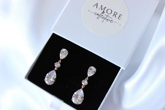 Discover our rose gold earrings collection, designed to add a soft, romantic glow to your wedding look. These unique pieces bring warmth and charm, making them a perfect choice for any bride.