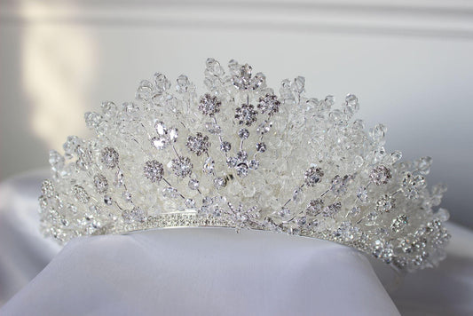 - Bridal Veils: Opt for a veil with silver-edged detailing or crystal embellishments to complement the crown's shine.