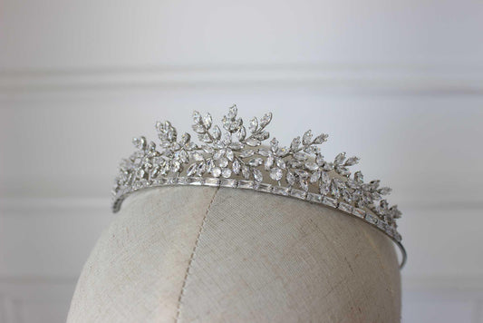 Silver crowns are a versatile choice, complementing a variety of wedding dress styles: