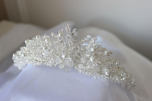 Mirna Pearl & Crystal Bridal Crown - Silver
