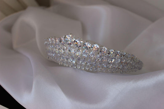 Silver wedding crowns are ideal for brides who want to embrace a timeless, classic style. Their neutral, cool tones suit most colour palettes, making them a versatile choice for any bridal theme. A silver crown adds just the right amount of sparkle without overpowering your gown, letting your beauty shine through.